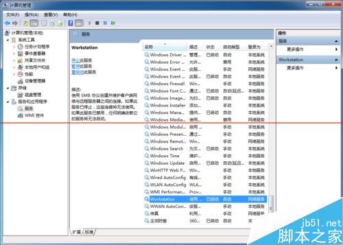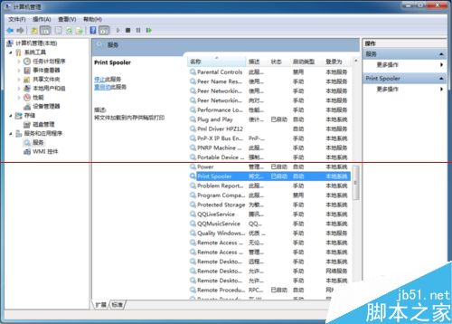 6、右擊電腦桌面計算機圖標,選擇管理,重啟 【服務】中的:Print Spooler、Server、Workstation等服務,如下圖