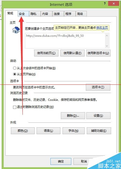 5、彈出的界面,如下圖所示,點擊其中的安全選項卡。