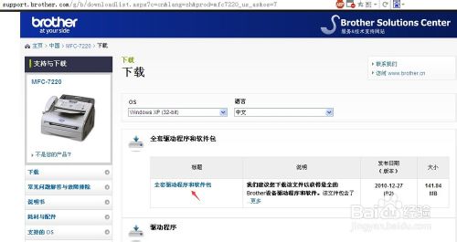 3、下載brother MFC7220型號(hào)打印機(jī)的打印及掃描驅(qū)動(dòng)程序文件。