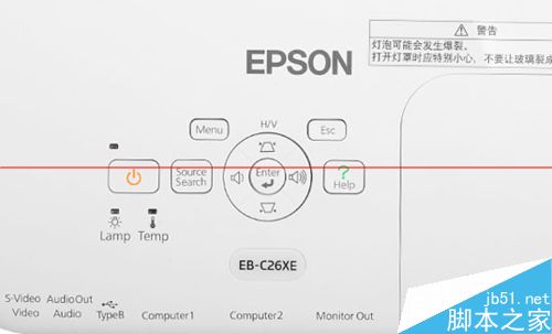 1)將電源線插入投影儀和壁上插座,電源燈亮起紅色。