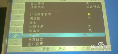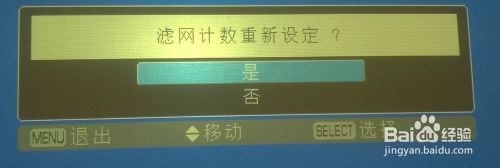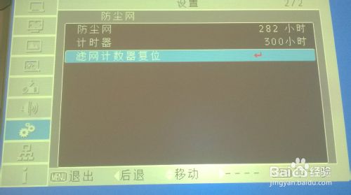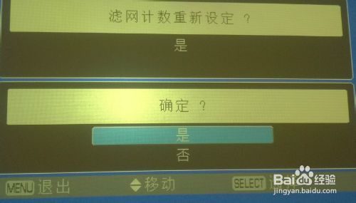 5、選擇設(shè)置-防塵網(wǎng)-濾網(wǎng)計數(shù)復(fù)位-確定-確定。完成投影機(jī)濾網(wǎng)清潔。