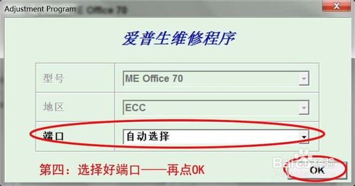 下載解壓,雙擊“Accept”打開清零軟件;點擊“select”按紐選擇端口,選擇打印機的對應型號;