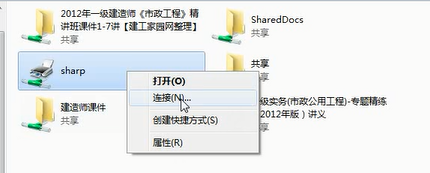 6、點擊確定,彈出搜索到的打印機電腦,右鍵打印機名稱圖標,選擇連接即可安裝完畢。
