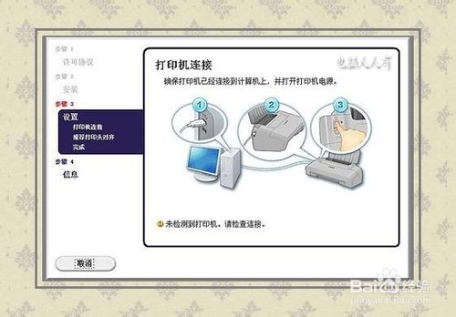 4、很多打印機(jī)裝不好,是因?yàn)闆]有根據(jù)打印機(jī)使用說明書進(jìn)行操作。有些打印機(jī)不宜將USB數(shù)據(jù)線提前插入電腦,只有等到系統(tǒng)提示了,才將USB數(shù)據(jù)線插入電腦讓其自動辨認(rèn),否則就會出錯(cuò)。