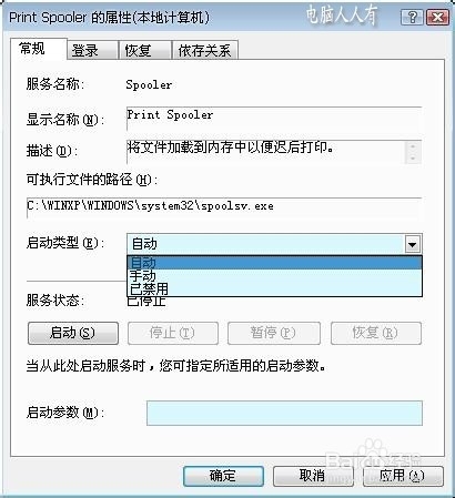 7、依次找到:Print Spooler服務(wù)→啟動類型→自動→應(yīng)用→啟動