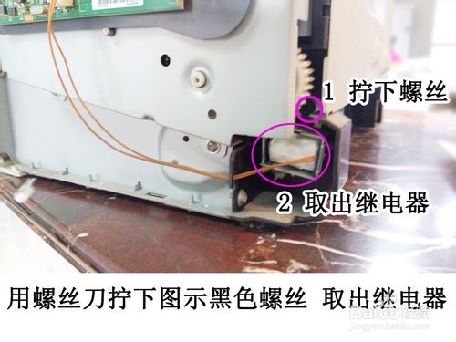 5、卸下側(cè)蓋后,把該側(cè)面朝向自己,擰下圖示黑色螺絲,取出繼電器