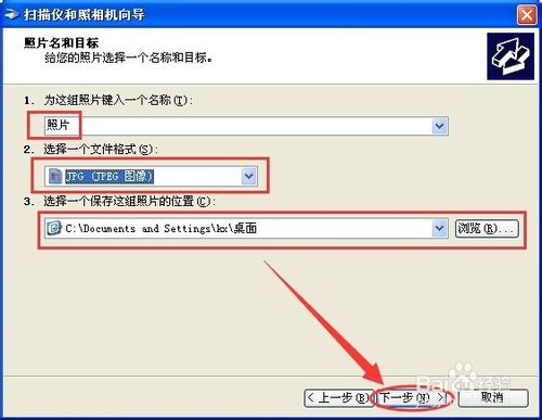 5、然后我們選擇掃描文件的定義名稱、保存位置和保存格式,保存格式我們一般選擇常用圖片格式JPG格式。