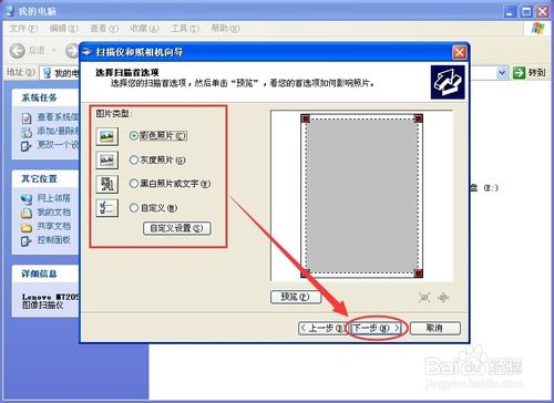 4、然后選擇定義掃描文件的類型,我們可以選擇掃描彩頁也可以掃描為黑白頁,但一般我們是選擇彩頁;