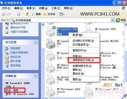 出現打印機脫機,無非就以下兩種情況: