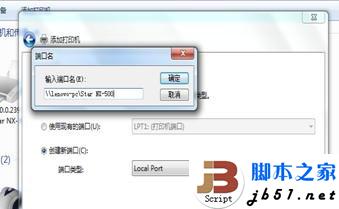 C、選擇“創建新端口”/ 選擇“local port” 這一項,按下一步,提示輸入端口名稱,輸入共享打印機的絕對路徑,格式為://***(共享打印機的計算機名或IP地址)/***(共享打印機的共享名稱),按確定;