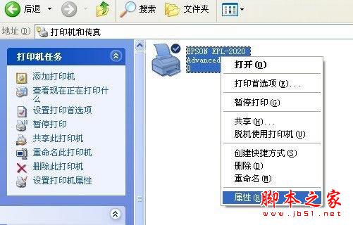 3、在已安裝的打印機上,點擊右鍵,選擇“屬性”: