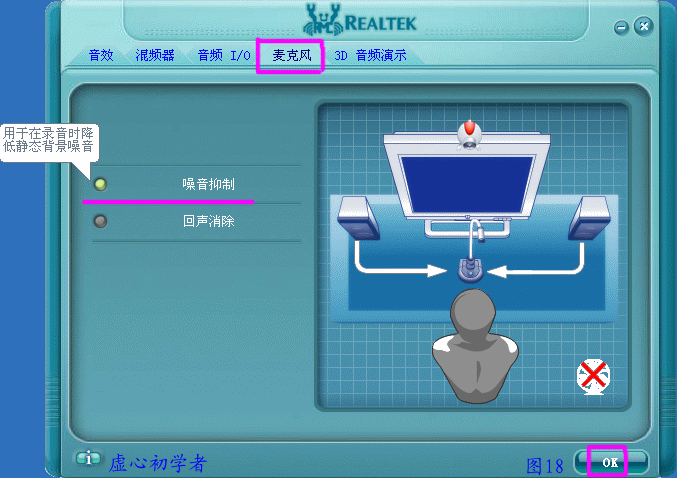 第十八步: 點開“麥克風”選項,“噪音抑制”點上。