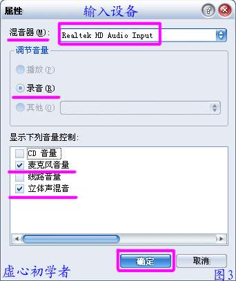 第三步: 點開上面的“混音器”,選擇“Input”設備,保留里面的“麥克風”與“立體音混音”選項。