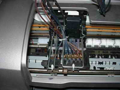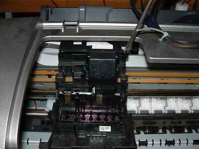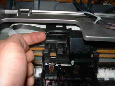 接著在用螺絲刀擰下固定打印頭的螺絲,小心的拔下排線,摘下打印頭。