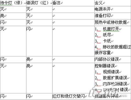 2. 指示燈顯示型 其故障代碼通過打印機控制面板上的指示燈或閃或亮的不同組合分別予以顯示。代表機型有:EPL-5900、EPL-6100等;