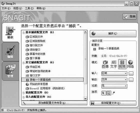 運行SnagIt7,選擇“錄制一個屏幕視頻”(圖7)。按下捕獲熱鍵“Ctrl Shift P”,用鼠標在視頻區(qū)域畫出SnagIt的錄制區(qū)域,松開鼠標一會兒便彈出錄制信息提示框,沒有問題的話便點擊“開始”錄制視頻。再次按熱鍵“Ctrl Shift P”便能暫停或停止錄制。停止后用點SnagIt打開預(yù)覽窗口,播放滿意后,便可將錄制的視頻保存為文件。