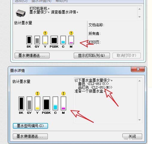 6、點擊圖表,彈出詳細的墨水情況說明,另幾個顏色是快要換的。
