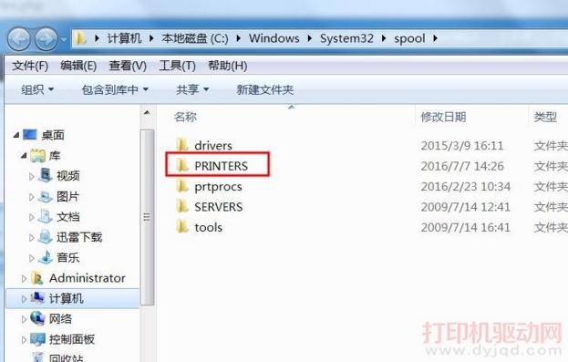 方法一:下載并運(yùn)行自動(dòng)刪除PRINTERS文件夾內(nèi)的文件的批處理程序