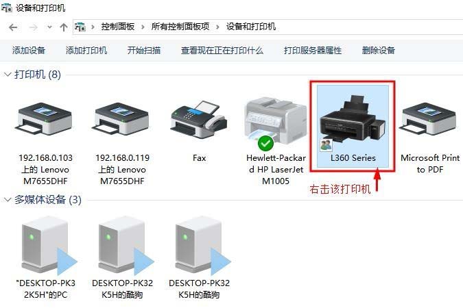 3、然后再找到安裝的需要清洗的打印機,用鼠標指在上面右擊鼠標。