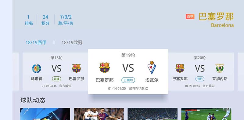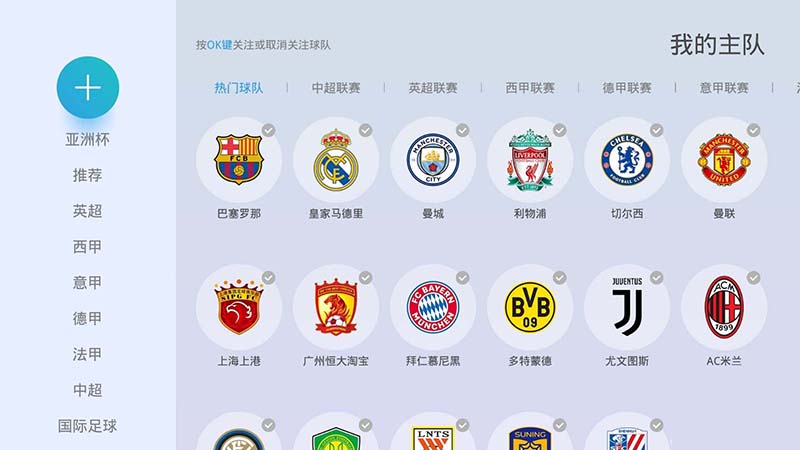 點擊“➕”就可以添加自己喜歡的球隊的隊徽,這樣隨時就都能看見這個球隊已經(jīng)踢完的比賽和未踢完的比賽,還可以預(yù)約你想看的比賽,等到時間,投影儀就會第一時間通知你觀看,感覺是不是很爽。