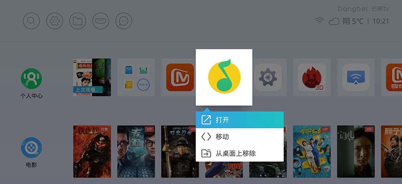 如果對這個軟件不喜歡或者不想要快捷方式了,也是可以刪除的,找到軟件后按遙控器菜單鍵就可以進(jìn)行移除了。