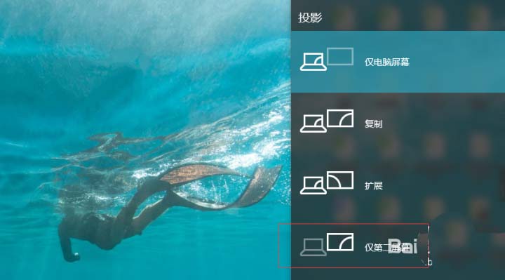 3、然后,就打開了相關的設置選項。需要注意的是,可以使用快捷鍵進行操作,按下微軟徽標鍵以及P鍵,即可快速開啟投影儀顯示的有關設置;