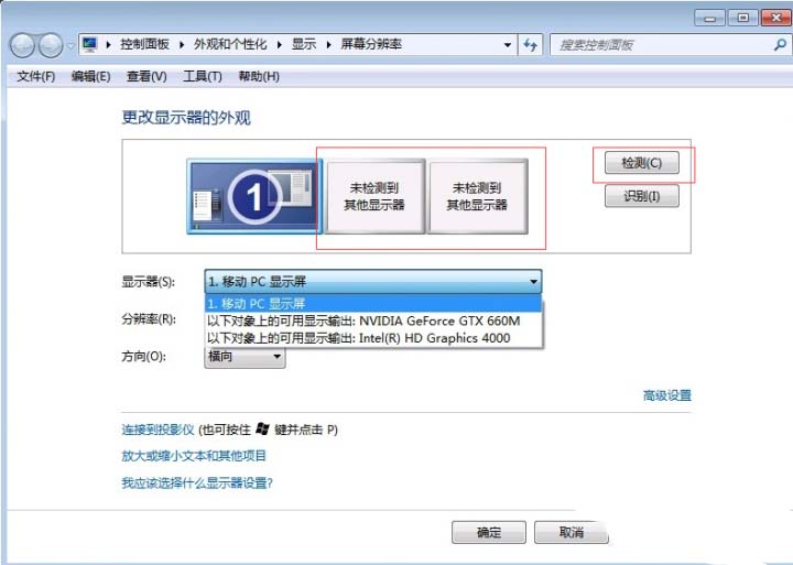 5、一般情況下,是使用投影儀進行放映展示PPT或者是一些視頻文稿,具體的設置,可以在屏幕分辨率里面進行不同的顯示器調節,這里大家可以參考一下自己自身顯示器的設置過程。