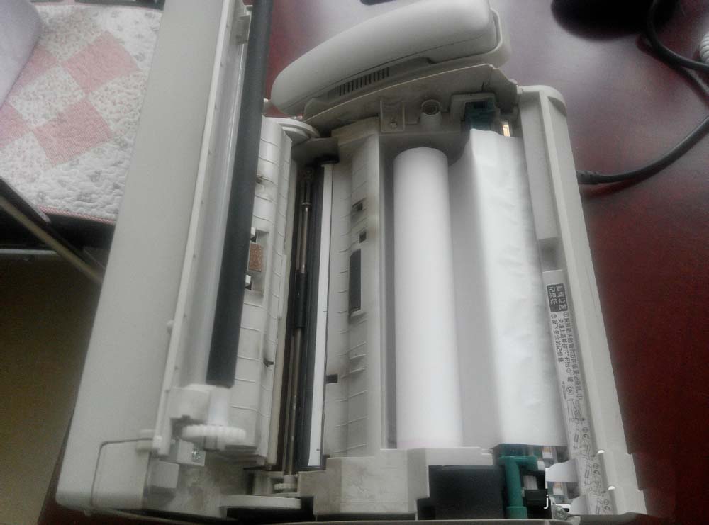 2、打開上機蓋后,就會看到原來快用完的傳真紙,可以小心的把舊紙取出來。所謂舊的不去新的不來,操作過程必須輕柔,不可用蠻力。