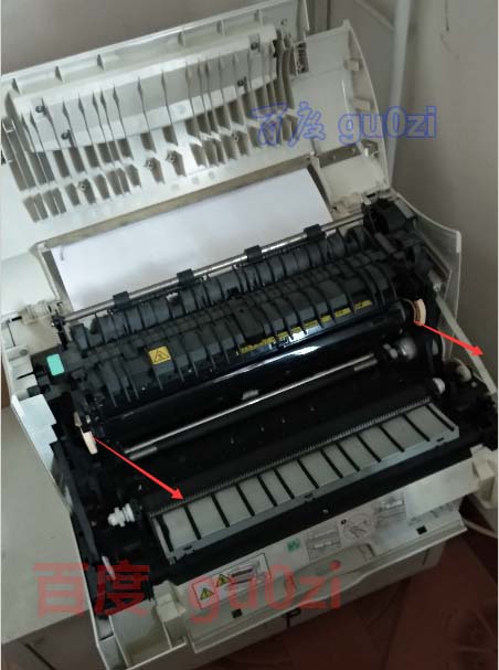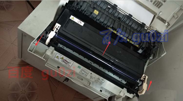 3、查看硒鼓是否安裝正常,打開前蓋和上蓋,取出硒鼓左右搖一搖,重新安裝上,