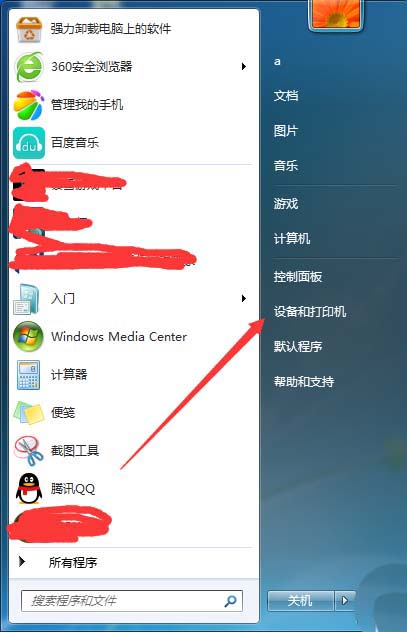 2、在彈出的菜單中,點擊設備和打印機。
