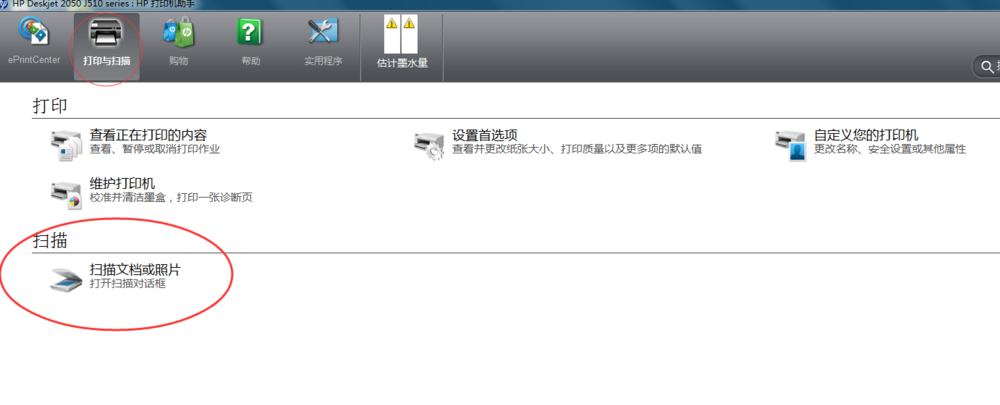 2、進入打印設置后,我們找到上面一排的‘打印與掃描’,然后在底下有一欄是單獨的掃描。選擇它