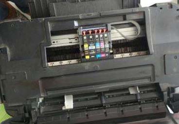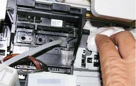 5、噴嘴部分會甩出一些墨水,用餐巾紙將墨盒噴嘴處甩出的墨水吸干,將清洗后的墨盒安裝回去,墨盒清潔過程就完成了;
