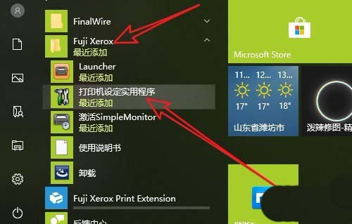 3、這時我們點擊Windows10的開始菜單,找到“打印機設定實用程序”菜單項