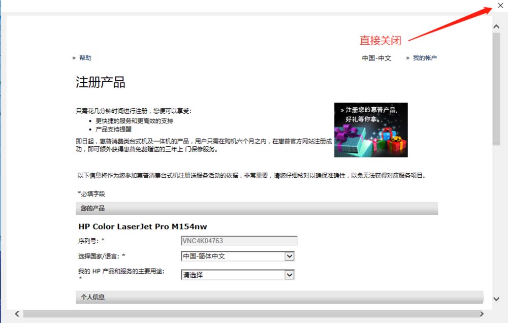 10、不想注冊或者已經注冊過的,直接關閉即可。至此,打印機驅動安裝完成。