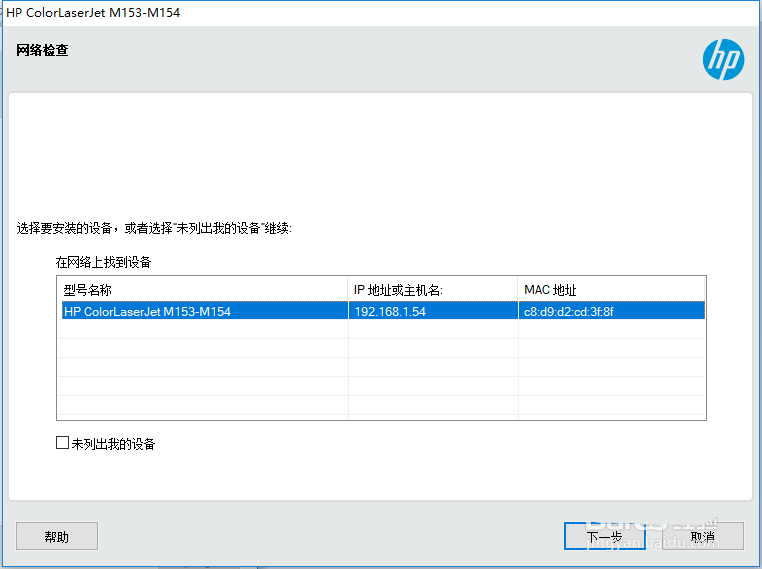 7、等待安裝程序自動搜索打印機。程序搜索到打印機后,鼠標單擊“下一步”,進入下一安裝步驟。