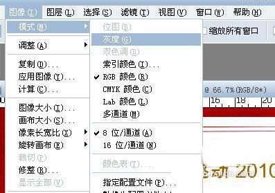 2、選擇菜單欄"圖像"點擊選擇"模式"在右側打開的菜單內選擇"灰度",有提醒"要扔掉顏色信息嗎"點擊"好",這時候圖片轉換為灰白色.