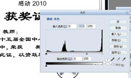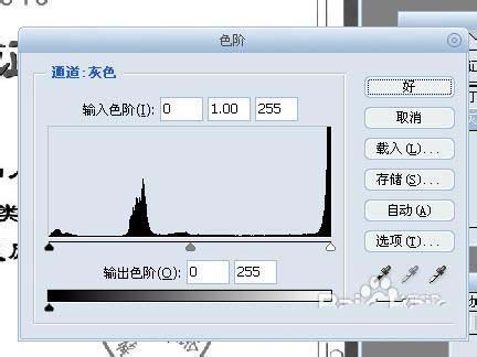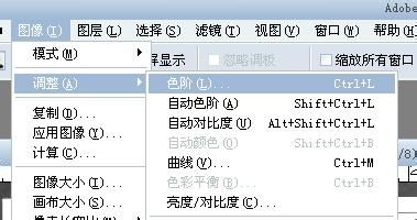 3、選擇菜單欄"圖像"點擊選擇"調整"在右側打開菜單內選擇"色階"在打開的色階窗口中,用鼠標拖動上邊的移動塊,向右拖動,這時候你會看到圖片顏色變的黑白分明,拖動到適度的黑白即可.點擊"好".
