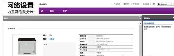3、首頁界面:可以查看打印機目前的狀態和信息