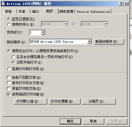 16、打開控制面版/打印機/1430,點右鍵,選屬性,再找到高級選項,選“新驅動程序”
