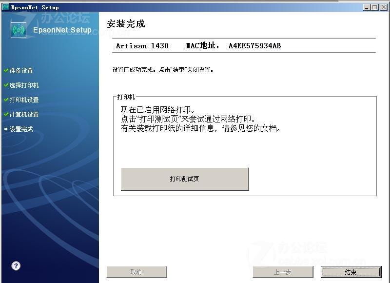 14、顯示1430(網絡)安裝成功,這時你會發現你的控制面版里有兩個1430打印機,一個是有線,一個是無線,將有線的點右鍵直接刪除(好像不能點卸載,那樣好像會影響到無線的驅動),可以直接使用無線功能打印了
