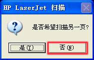6、在“hp LaserJet 掃描”窗口中,點擊“否”按鈕即完成本次掃描,如需繼續掃描下一個文檔請點擊“是”,重復以上步驟即可。