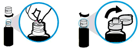 2、從墨水瓶上取下保護帽,拉掉封條,重新安裝保護帽,然后翻轉打開蓋板。
