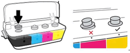 1、打開墨水罐蓋板。從重新填充的墨水罐上取下插頭。(注意:插頭的底部可能有墨水。 要把插頭直立放置,避免墨水轉移。)