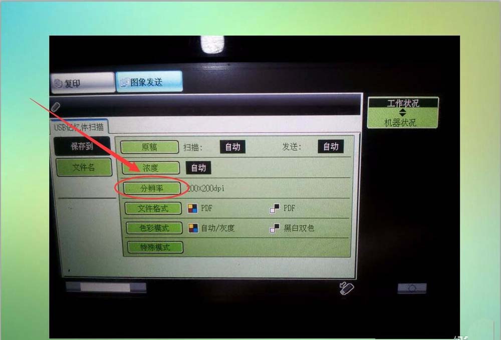 2、打印機(jī)的屏幕最上方會(huì)有“復(fù)印”與“圖像發(fā)送”,點(diǎn)擊“圖像發(fā)送”。