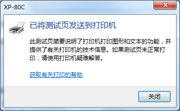 4、點擊按鈕后,系統會將測試頁傳送給連接后的打印機上,并提示已將測試頁傳送到打印機上。