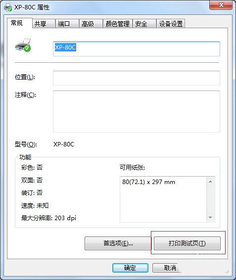 3、在彈出的窗口中,點擊右下角的打印測試頁按鈕。