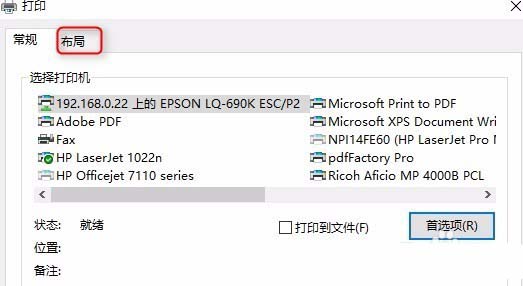 5、點擊“確定”,再點擊“確定”后返回到打印頁面,點擊“布局”;
