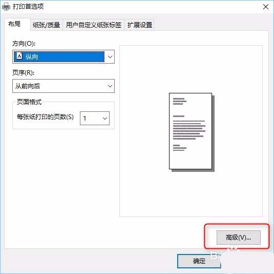 4、彈出高級選項頁面,按實際情況選擇相應的紙張。