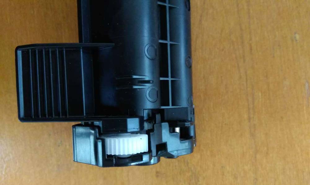 2、找到墨粉盒上白色的小齒輪,旋轉約九十度。就ok了。