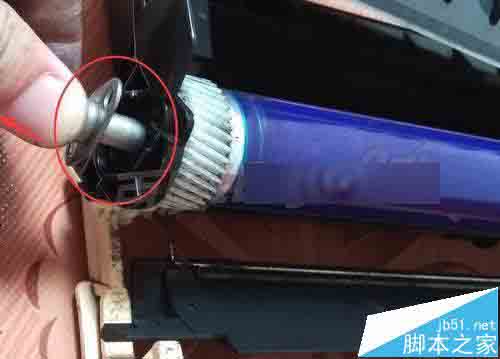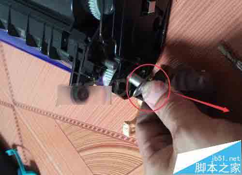 2、感光鼓大齒輪所在的一側(cè)比較好拆,第一次比較不好緊,不要太溫柔,不然可能弄不下來